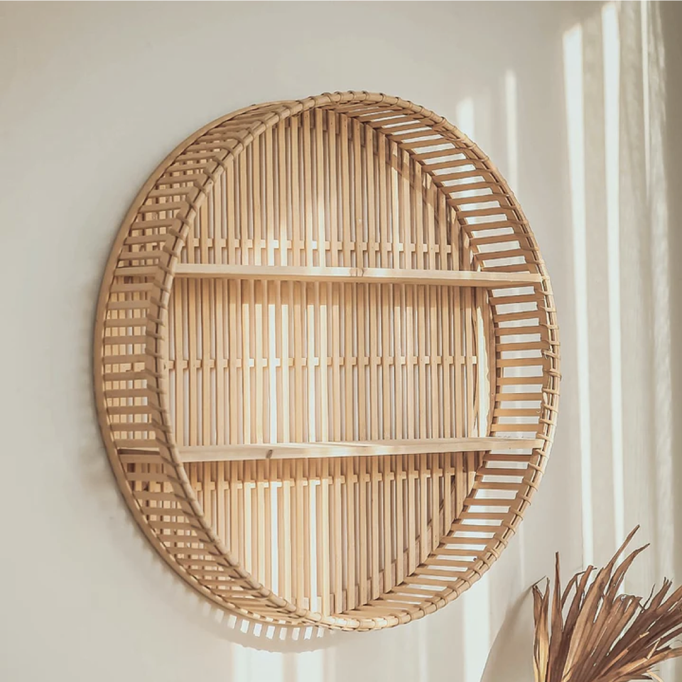 Nombre del producto:Estante de pared redondo de bambú Boho