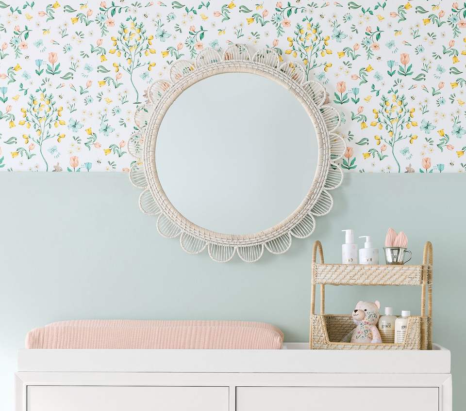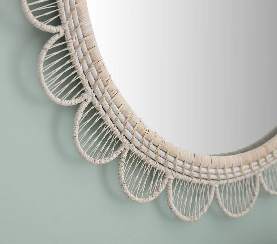 Espejo de Pared Decorativo de Mimbre Hecho a Mano con Marco de Ratán, Estilo Boho, para Decoración del Hogar, Dormitorio, Sala de Estar