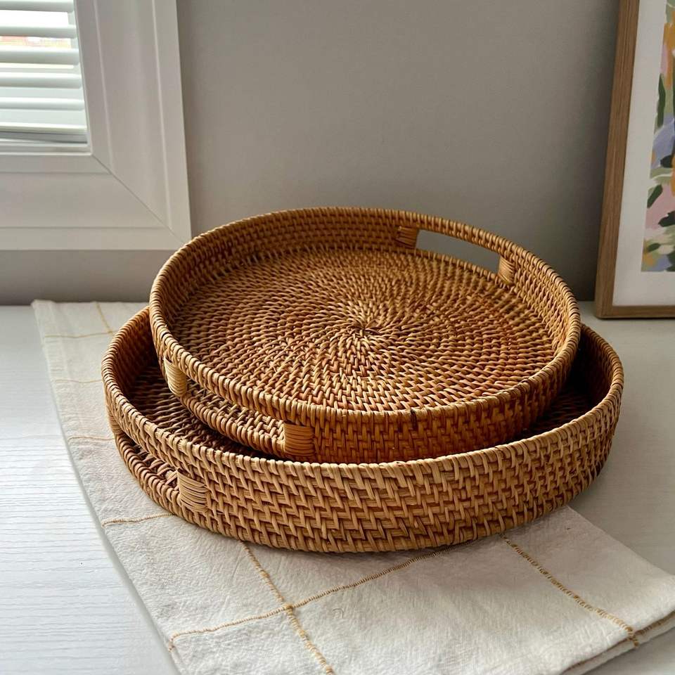 Bandeja de Ratán con Asas 2026, Superventas, Organizador para el Hogar y la Cocina, Bandeja Redonda, Fabricación en India, Venta al por Mayor en Alibaba