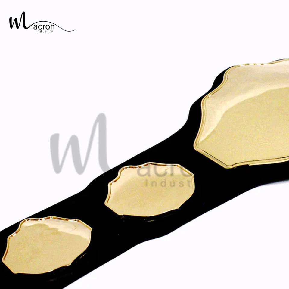 Característica::Placas de metal resistentes y duraderas, hebilla ajustable, acabado de alto brillo.