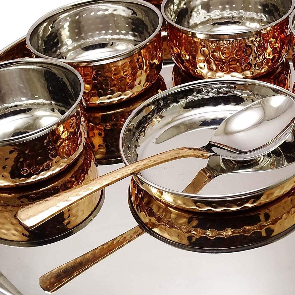Palabra clave:Juego de Vajilla de Cobre, Juego de Thali de Cena de Acero Inoxidable, Cobre y Plata Pura