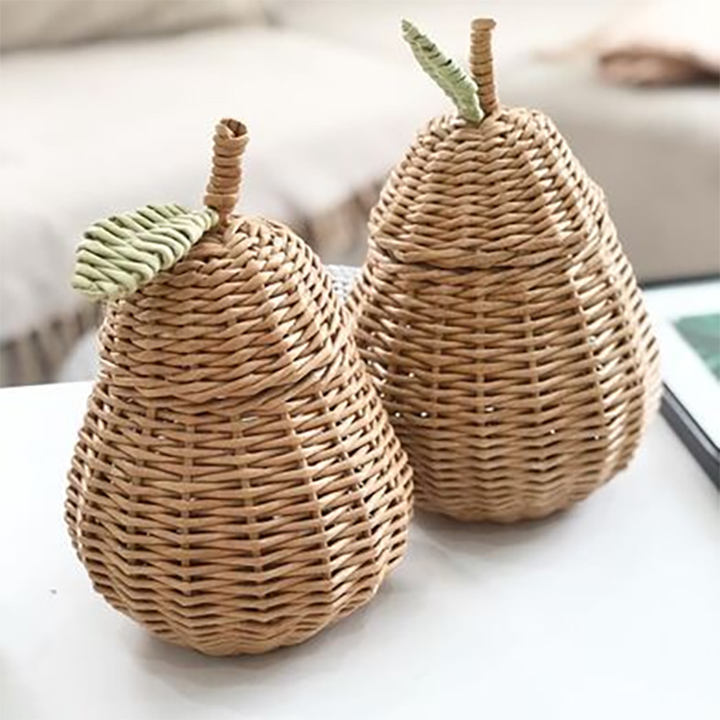 Cesta de almacenamiento de ratán tejida a mano del mejor vendedor con tapa Almacenamiento en forma de manzana Contenedor de juguetes para niños Joyería MOQ bajo de Vietnam