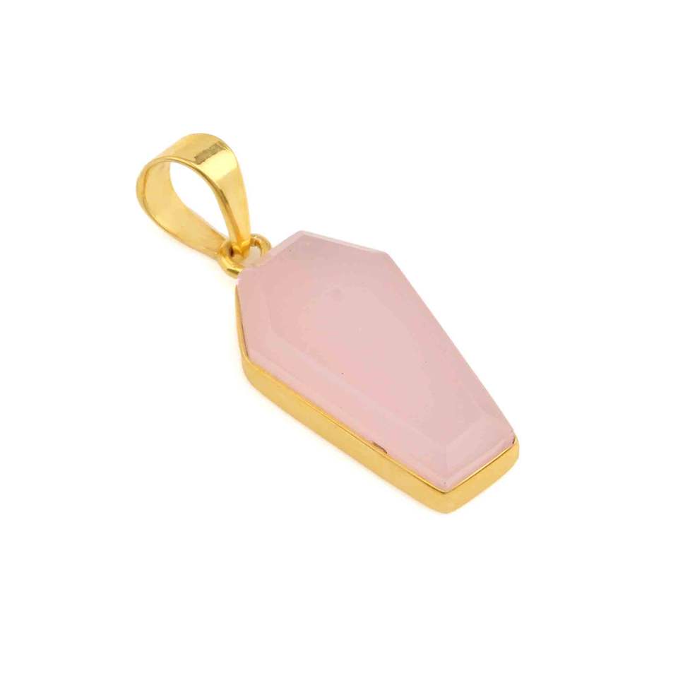 Nombre del producto:Cuarzo Rosa 10x17mm forma de ataúd plata esterlina bisel encanto colgante