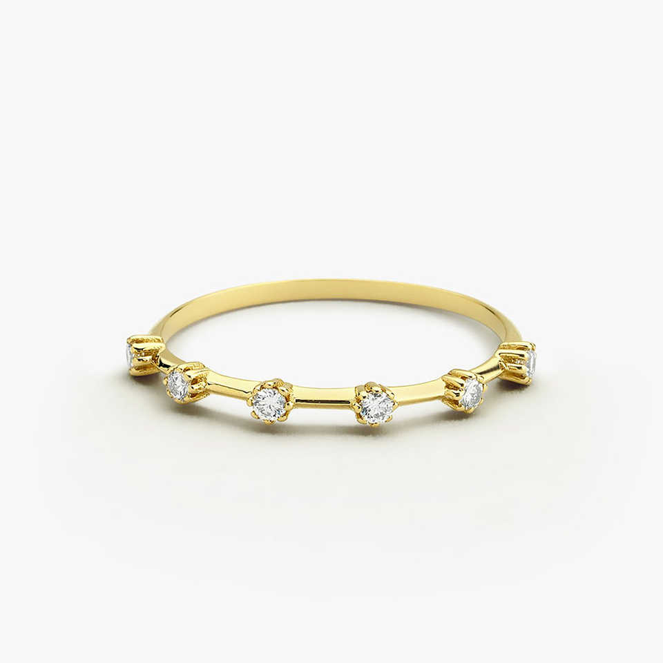 Anillos de Aniversario Más Vendidos, Anillo Apilable de Oro de 14k, Corte Redondo, Plata de Ley 925, Joyería Delicada de Lujo para Boda y Compromiso