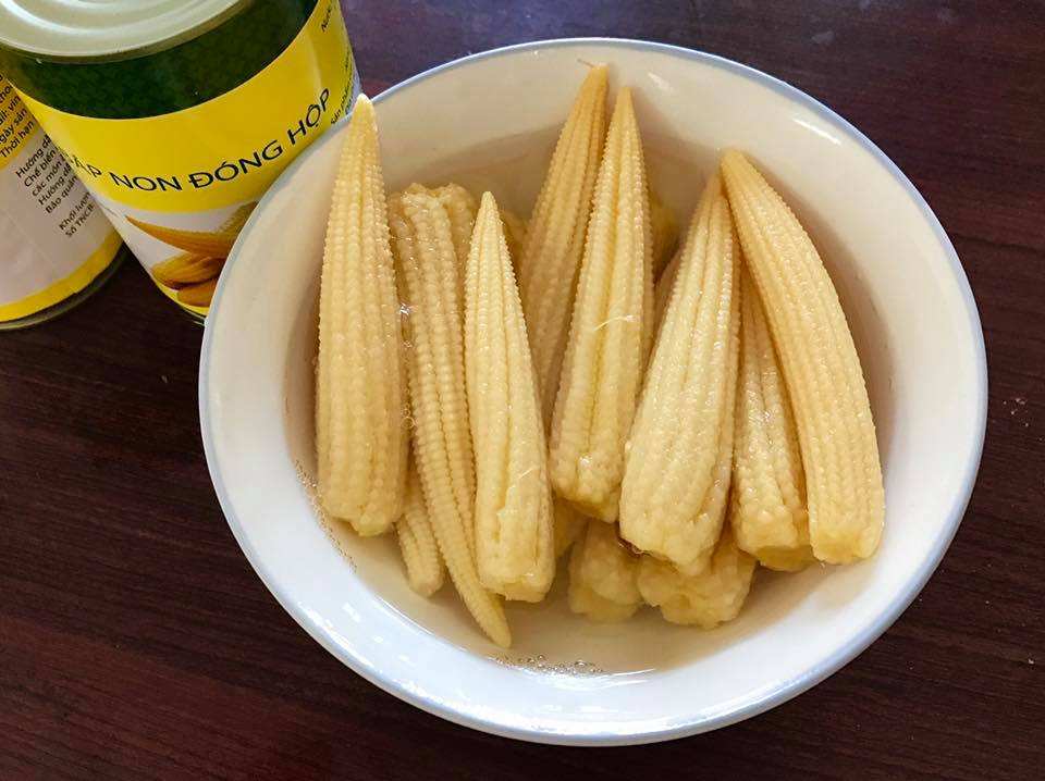 Materia prima:Maíz bebé fresco, agua, sal, azúcar, ácido acético