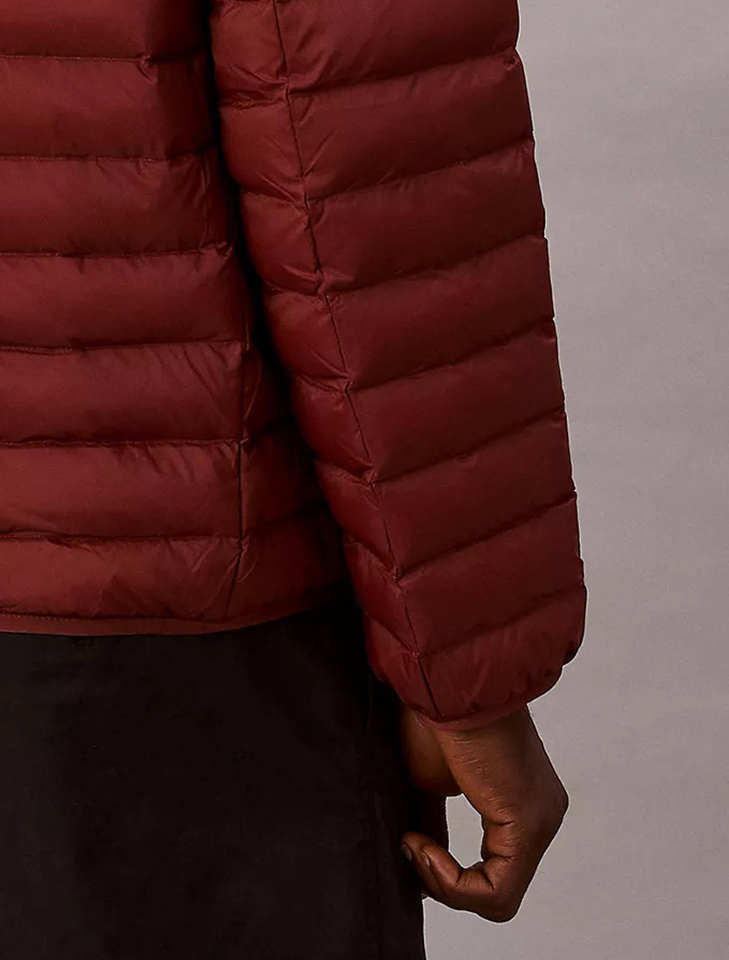 Chaqueta acolchada de nailon roja académica con logotipo personalizado, de manga larga y cuello alto, para hombre, resistente al agua y al viento.