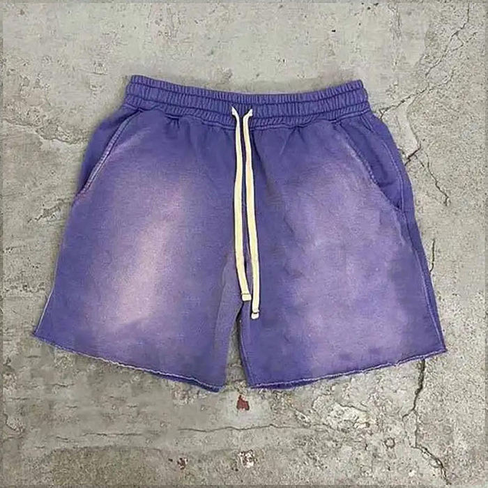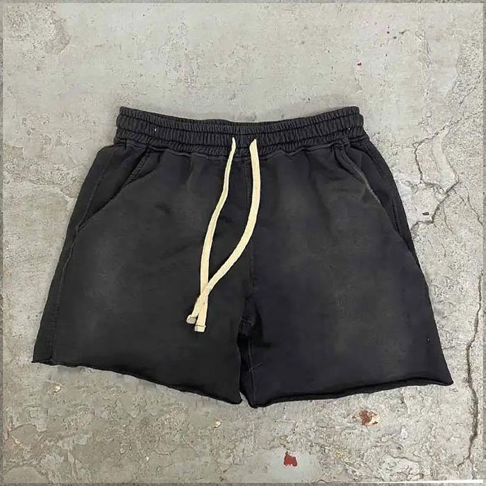 Top venta cordón ácido lavado pantalones cortos hombres francés Terry Vintage pesado Gsm algodón Jogger pantalones cortos corte crudo borde pantalones cortos