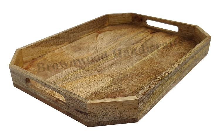 Bandeja de madera de acacia de forma octogonal de diseño elegante más vendido para desayuno, almuerzo y cena, bandeja de mesa de centro de madera para exportación
