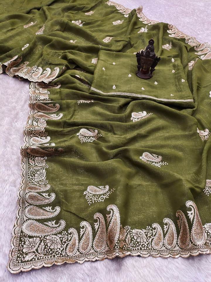Sari de Estilo Cachemirí de Diseño Moderno y Elegante, Ideal para Bodas y Fiestas, Fácil de Drapear, con Blusa