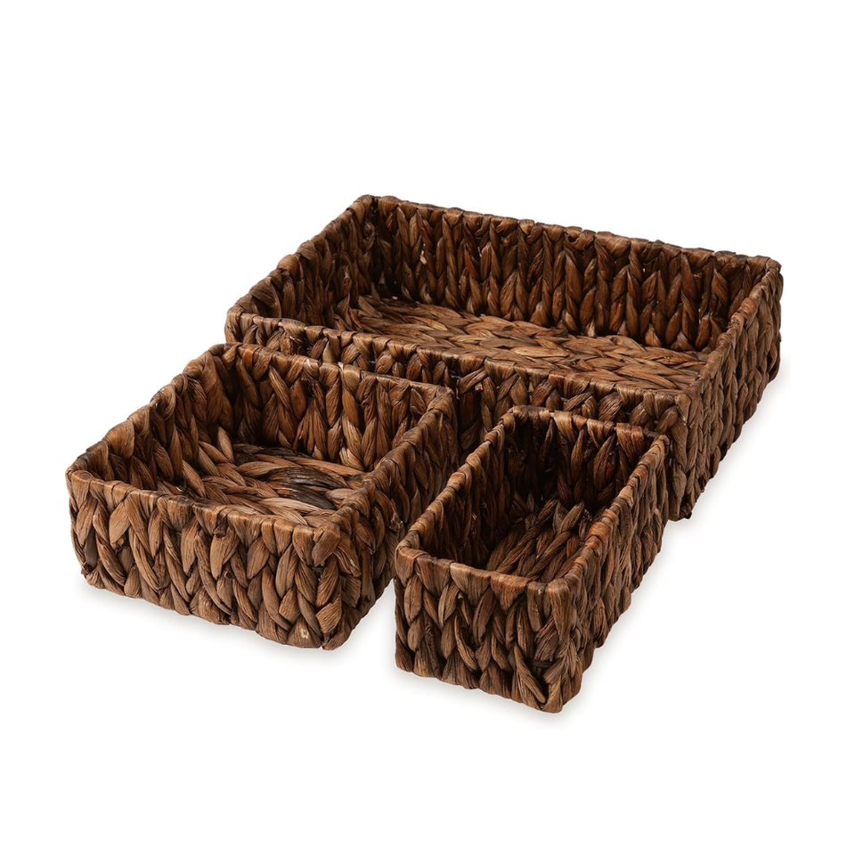 Juego de 3 cestas de jacinto de agua estilo granja más vendidos para dormitorio, sala de estar, cocina, mesa de comedor de Vietnam