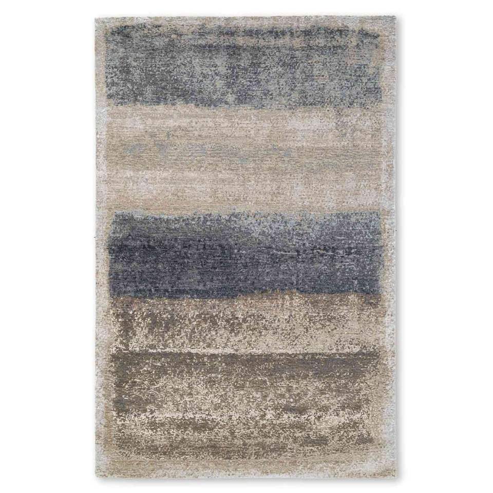 Alfombra de seda anudada a mano con patrón floral más vendida Forma de rectángulo azul/beige Diseñado con cierre de color natural