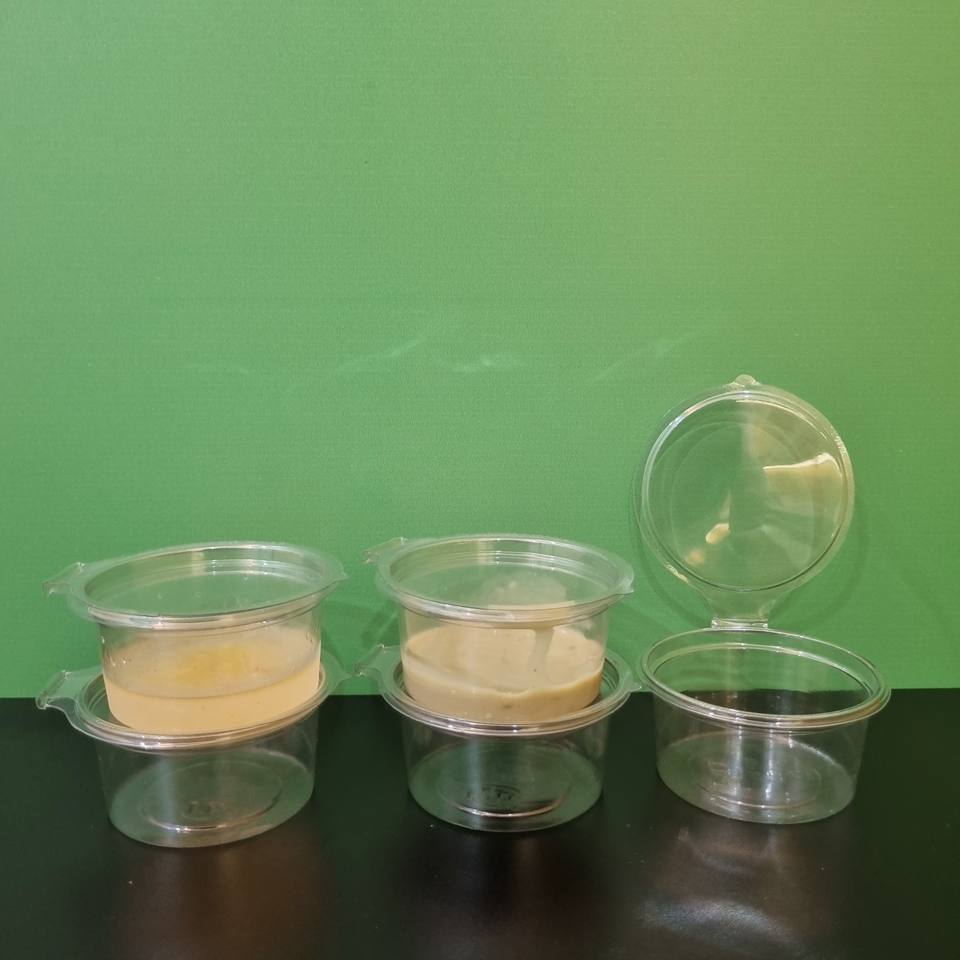Venta al por mayor de grado alimenticio Mini desechable de plástico PET contenedor de porción transparente salsa condimento taza contenedor con tapas 2oz