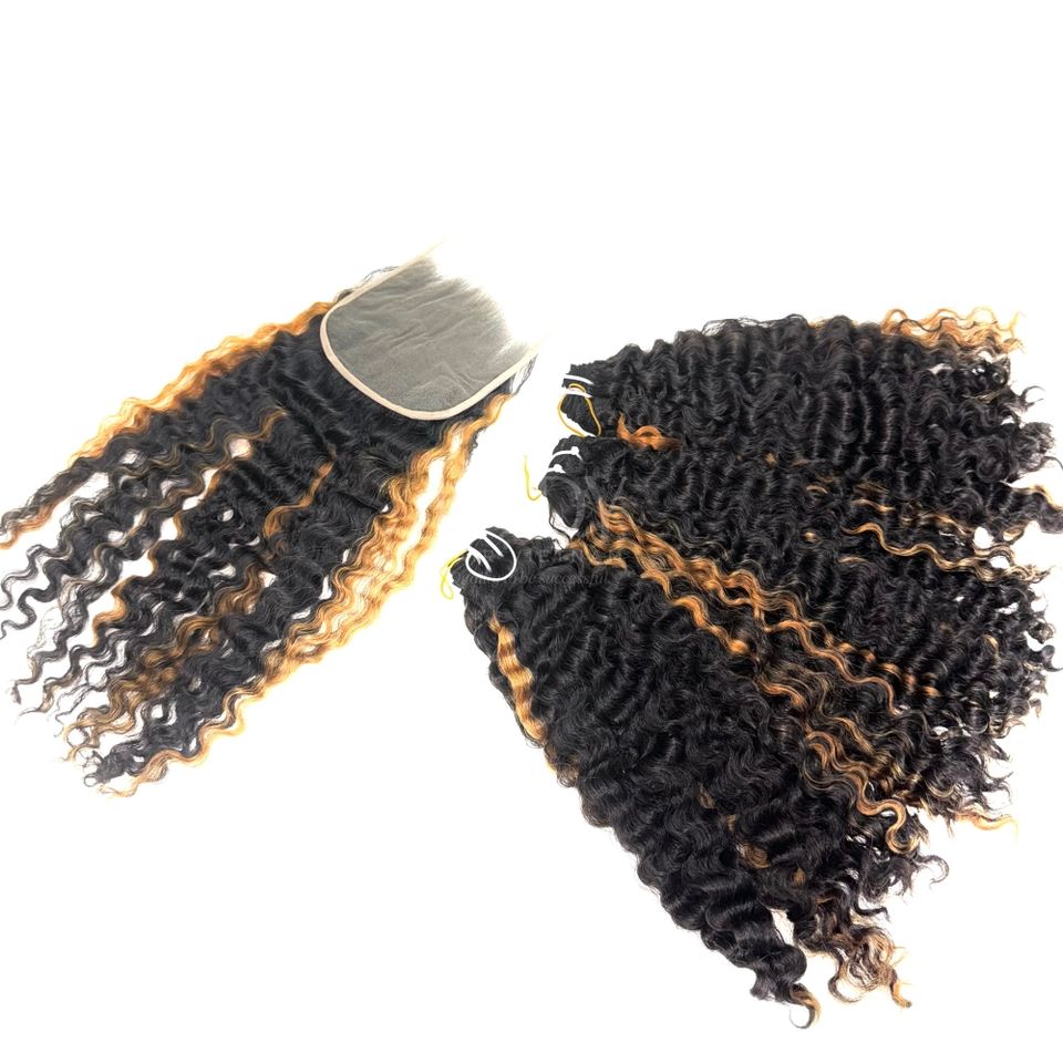 Más vendidos de buena calidad Super doble dibujado birmano Color rizado 3 paquetes con 1 Cierre 6x6 Set para hacer pelucas
