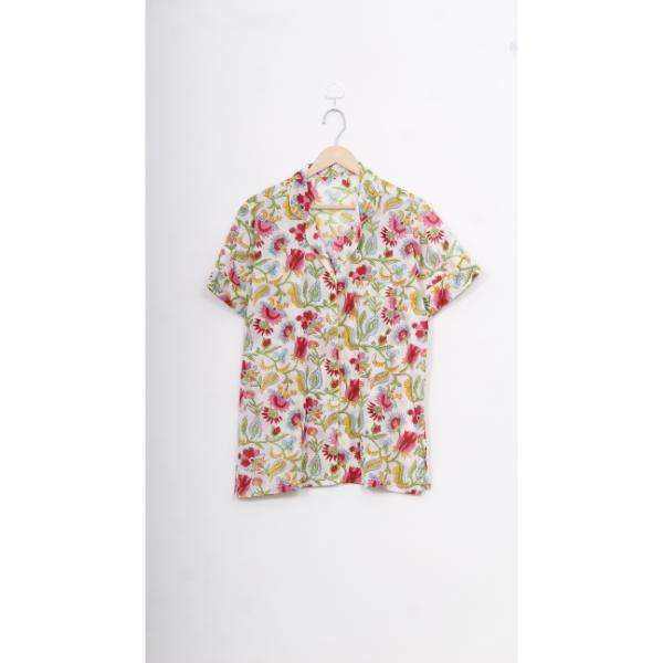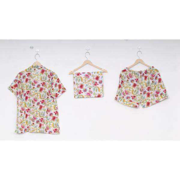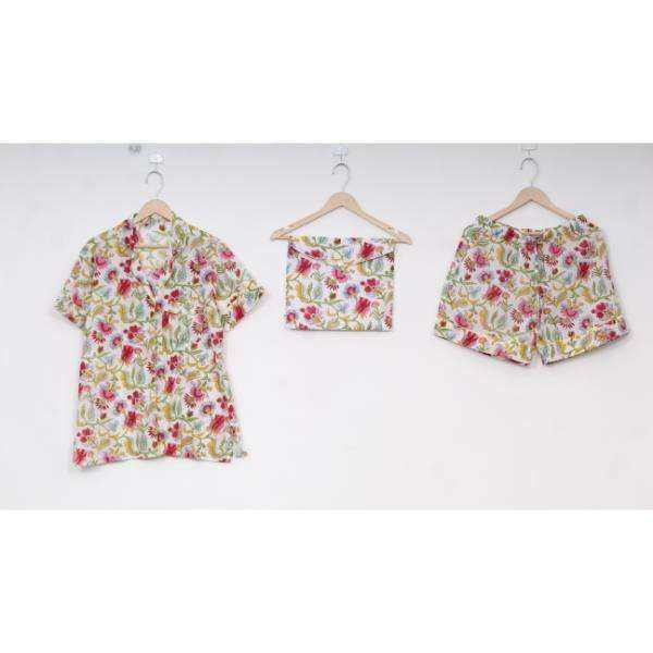 Conjunto de Pijama Corto Informal para Mujer, de Algodón Satinado con Estampado Digital, Cintura Elástica, Hermoso Estampado Floral, Transpirable