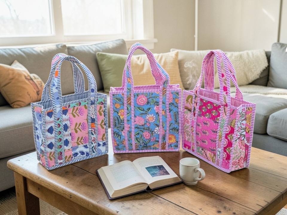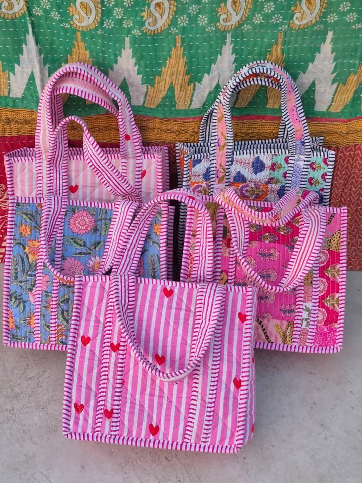 Bolso Tote de Viaje Acolchado a Mano con Múltiples Parches, Hermoso Bolso de Compras para Mujer, Hecho a Mano con Tela de Algodón Kantha, con Cierre para la Playa