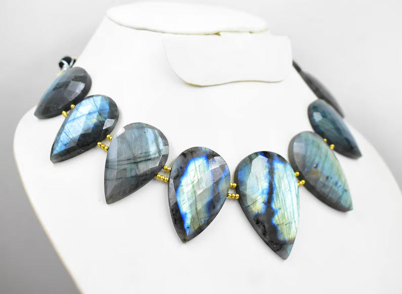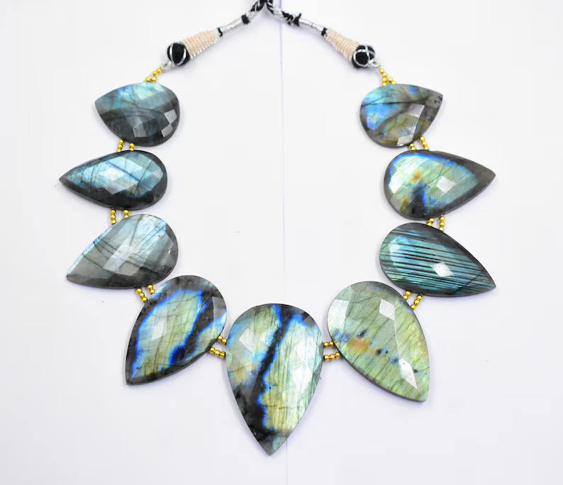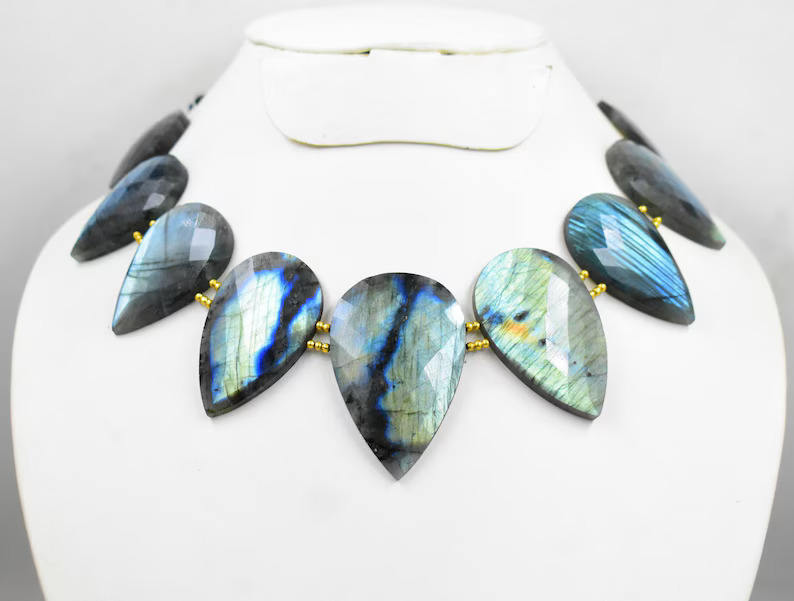 Collar de labradorita de alta calidad más vendido, collar de cuentas de estilo clásico, declaración de piedras preciosas, perlas de agua dulce para