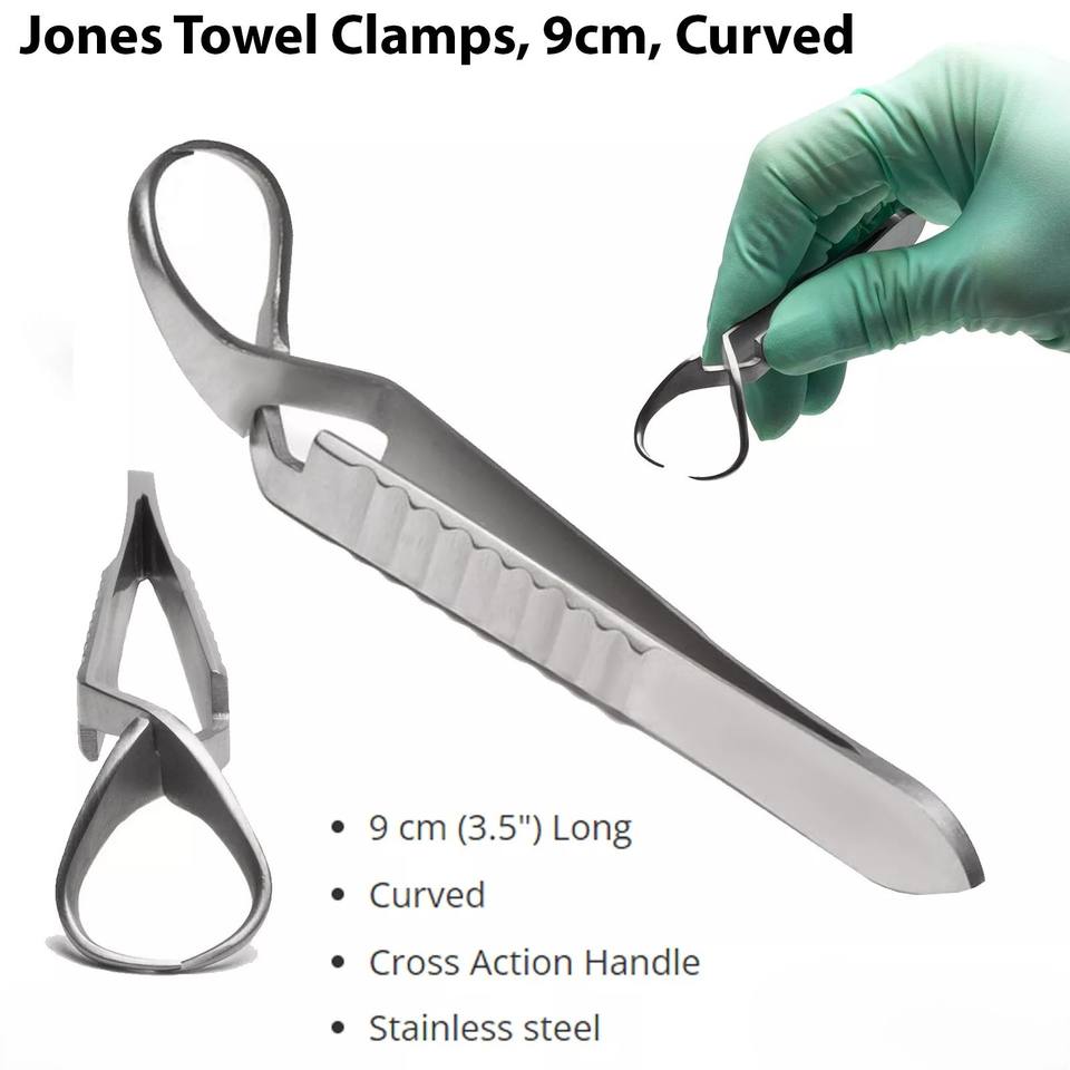 Fórceps de abrazadera de toalla Jones más vendidos 5cm 9cm Manual de acero inoxidable alemán instrumentos quirúrgicos de acción cruzada base quirúrgica