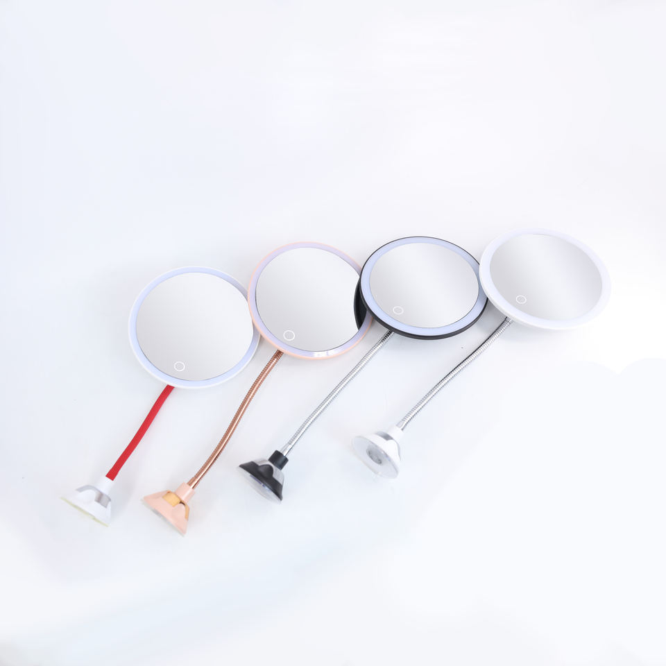 Espejo de Baño LED con Ventosa, Tubo Metálico Flexible con Cuello de Cisne, Espejo de Vanidad con Aumento de 10X, Superventas