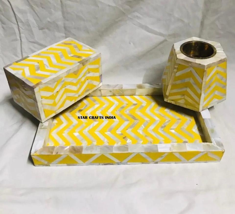 Bandeja de madera para decoración del hogar de diseño único moderno más vendida, bandeja con incrustaciones, juego de nácar con quemador bakhoor y Caja con incrustaciones de fregona