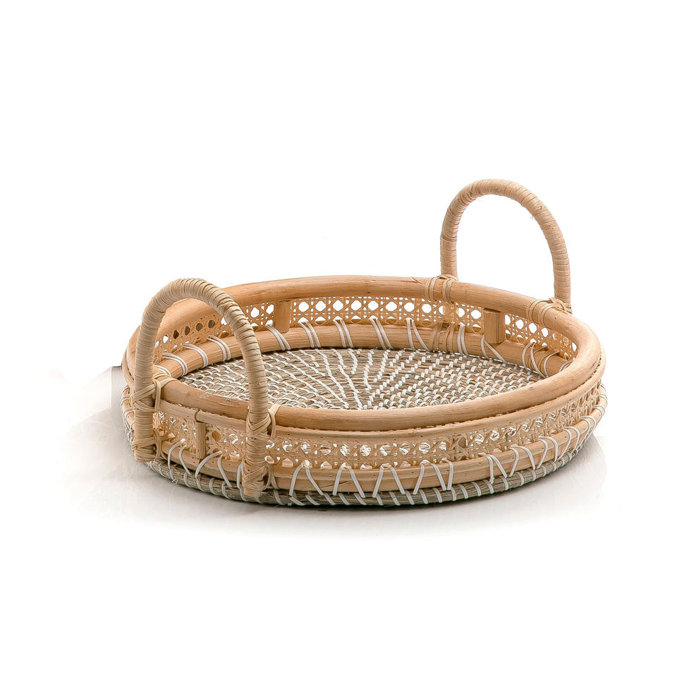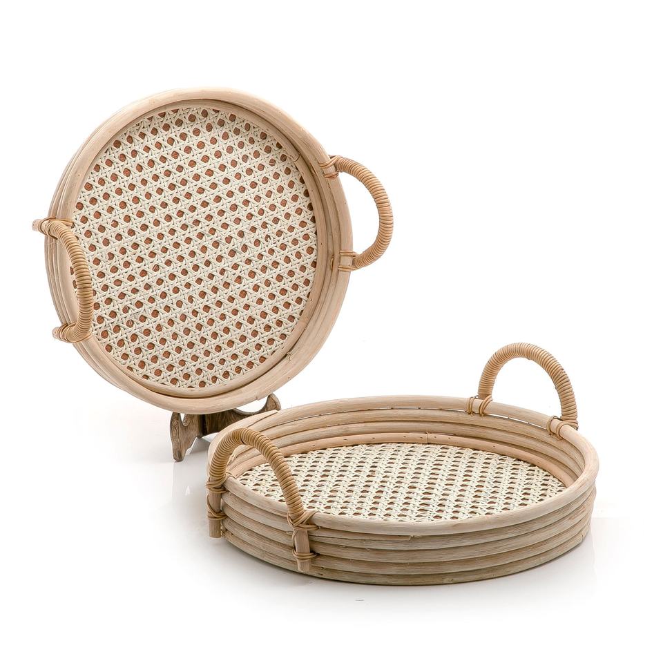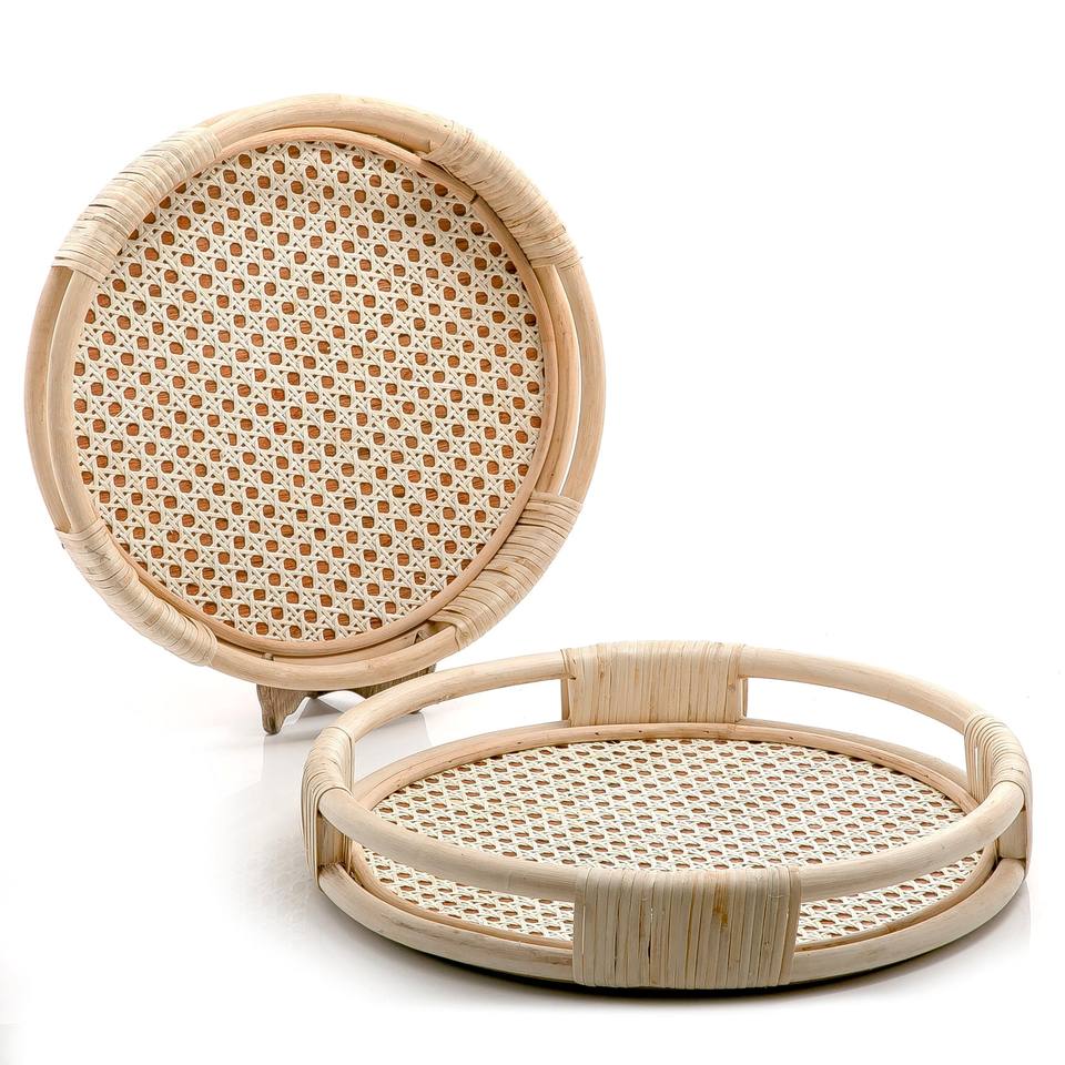 Bandejas de mango de ratán natural para algas marinas, bandejas redondas para fruta, material de algas marinas hecho a mano en Vietnam, superventas