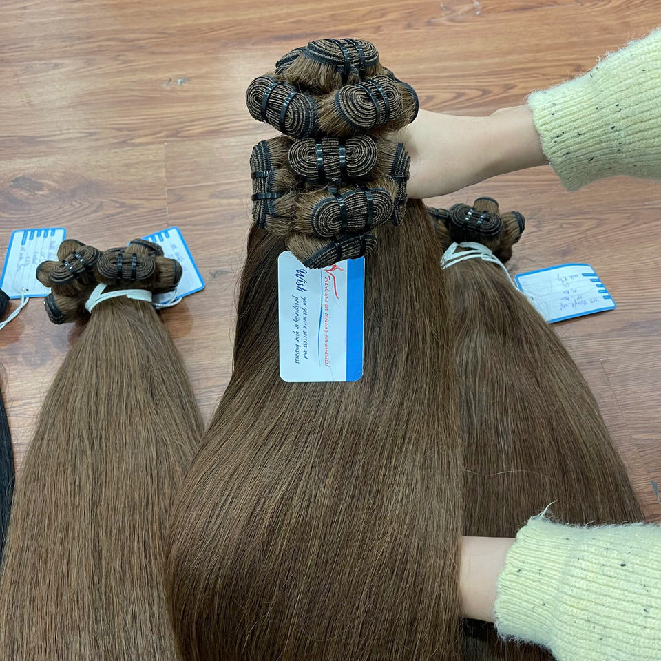 Extensiones de Cabello Natural Liso con Trama Cosida a Máquina, Color Marrón, Sedoso y Suave, Cutícula Alineada, 100% Cabello Humano, Más Vendidas