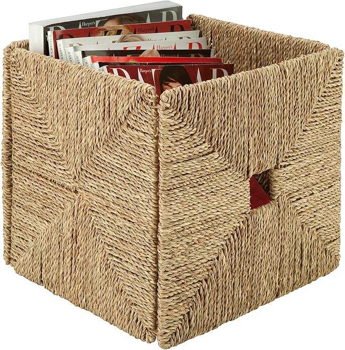 Cesta de almacenamiento tejida a mano de algas marinas ecológica más vendida forma cuadrada plegable multiuso nuevo estilo Natural