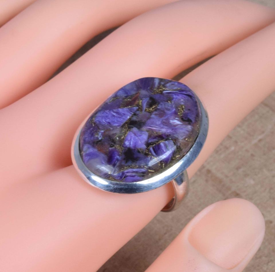 Más vendidos, cobre púrpura, turquesa, alto pulido, ajuste de bisel de plata 925, forma ovalada orgánica, anillo delicado para mujer, joyería Navajo