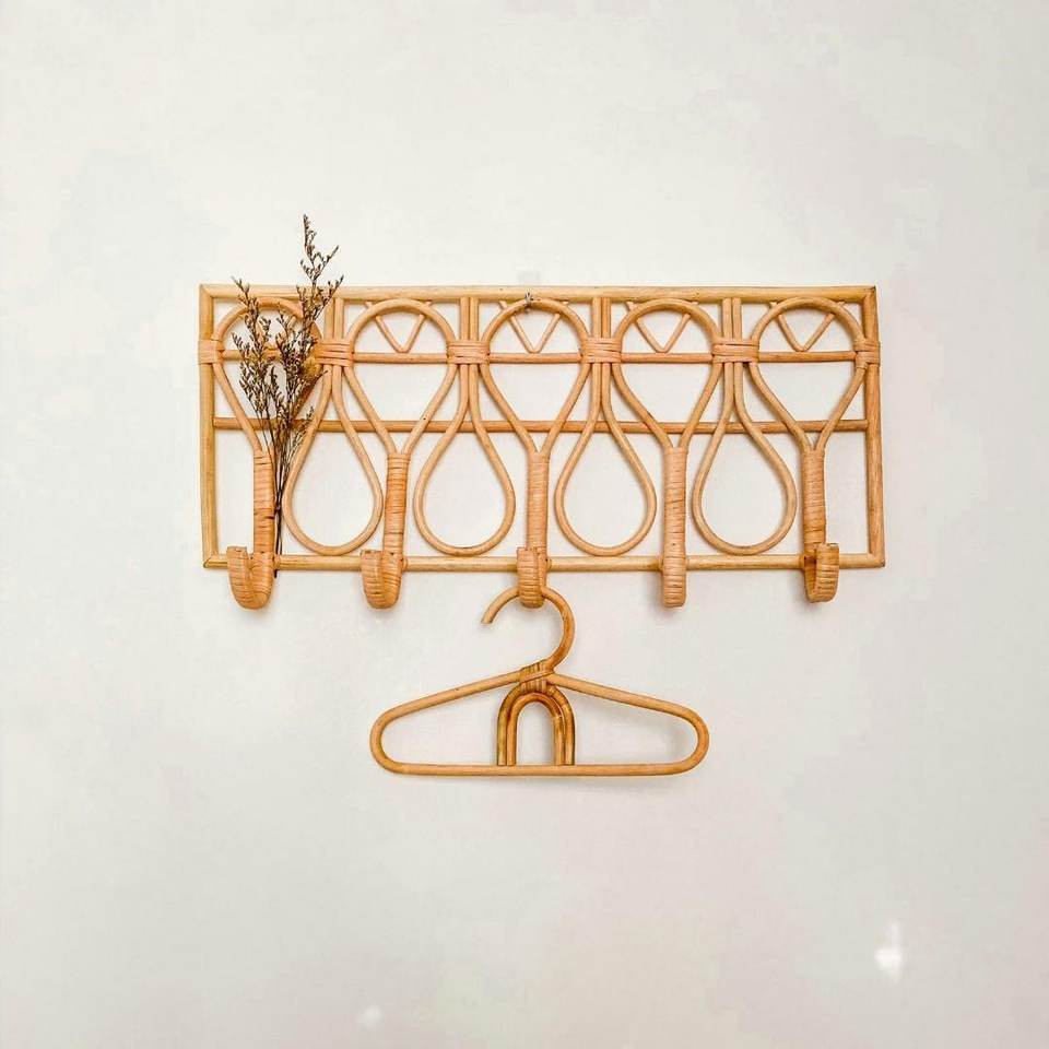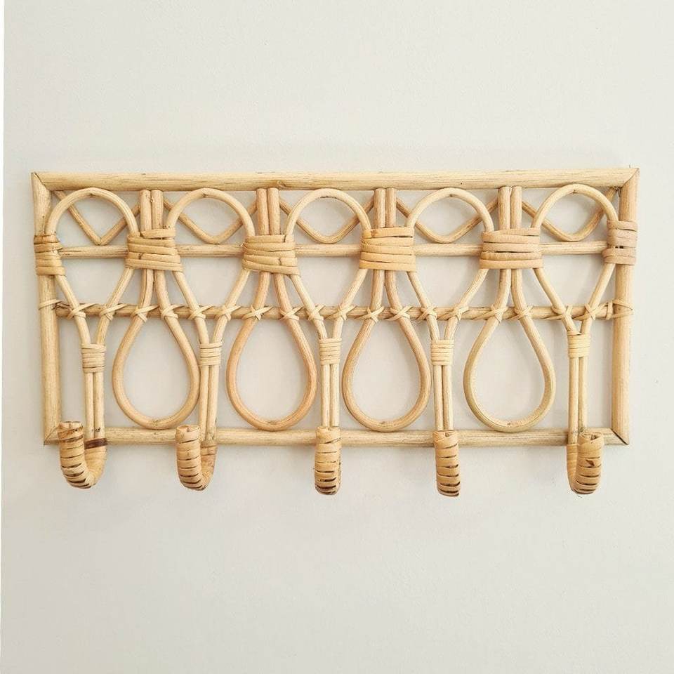 Ganchos de pared de ratán más vendidos Organización del hogar Panel de gancho hecho a mano natural para abrigos y colgar llaves