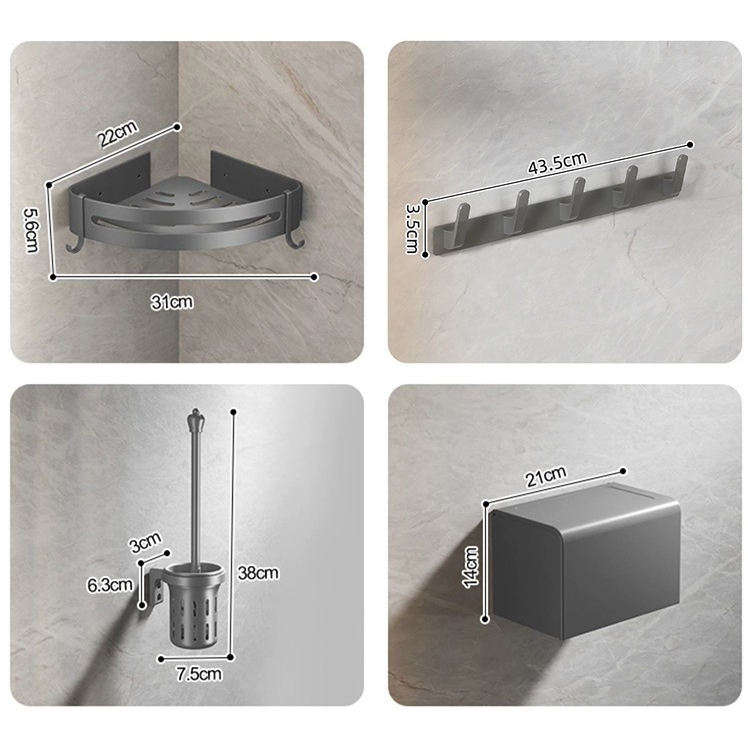 Juego de Accesorios para Baño en Gris Metálico, Incluye Toallero, Ideal para Hogar y Hotel