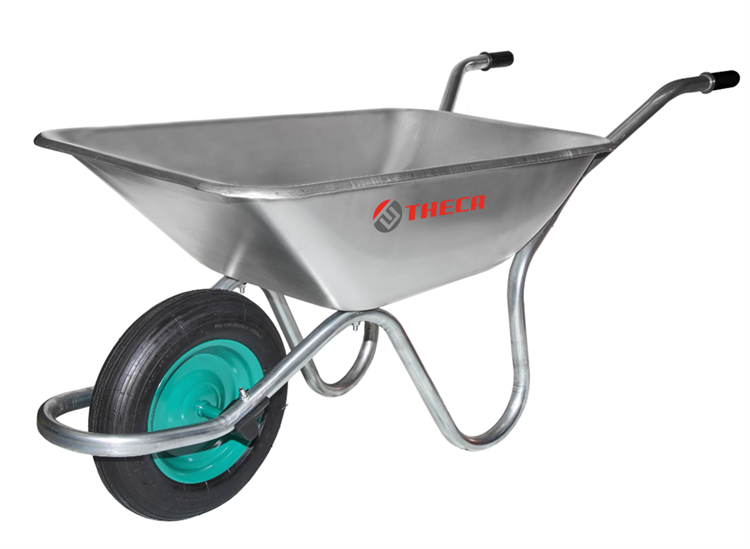 Carretilla más vendida con rueda neumática, precio bajo, capacidad de 90 L, carretilla duradera galvanizada para jardín ecológico