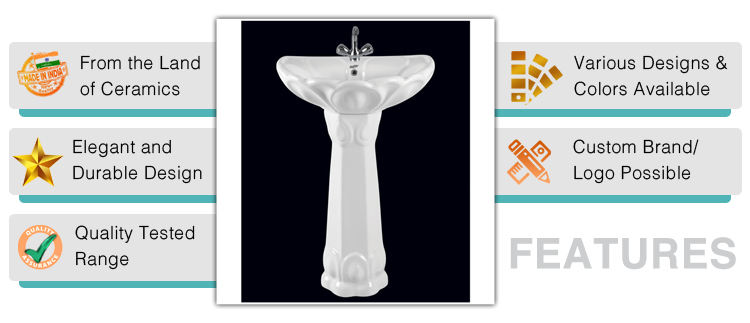 Fregaderos de pedestal para lavabo ovalado de diseño clásico de cerámica blanca más vendidos, el mejor exportador a granel para USO HOTELERO