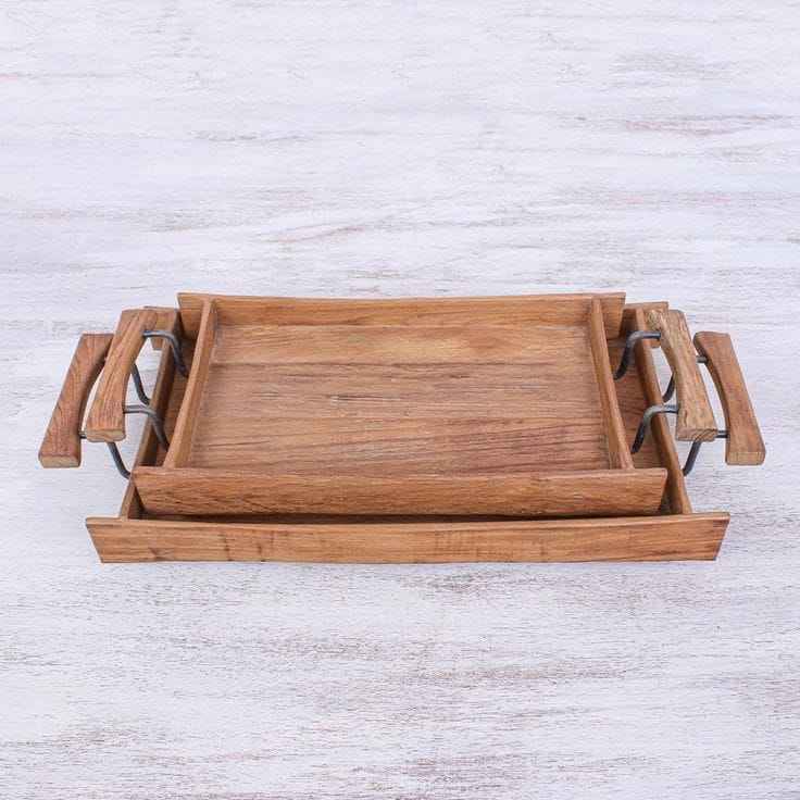 Bandeja de Servir de Madera Natural Moderna, Artesanía Khadim, Bandeja para Desayuno Hecha a Mano con Revestimiento de Esmalte, Decorativa y Sostenible, Superventas