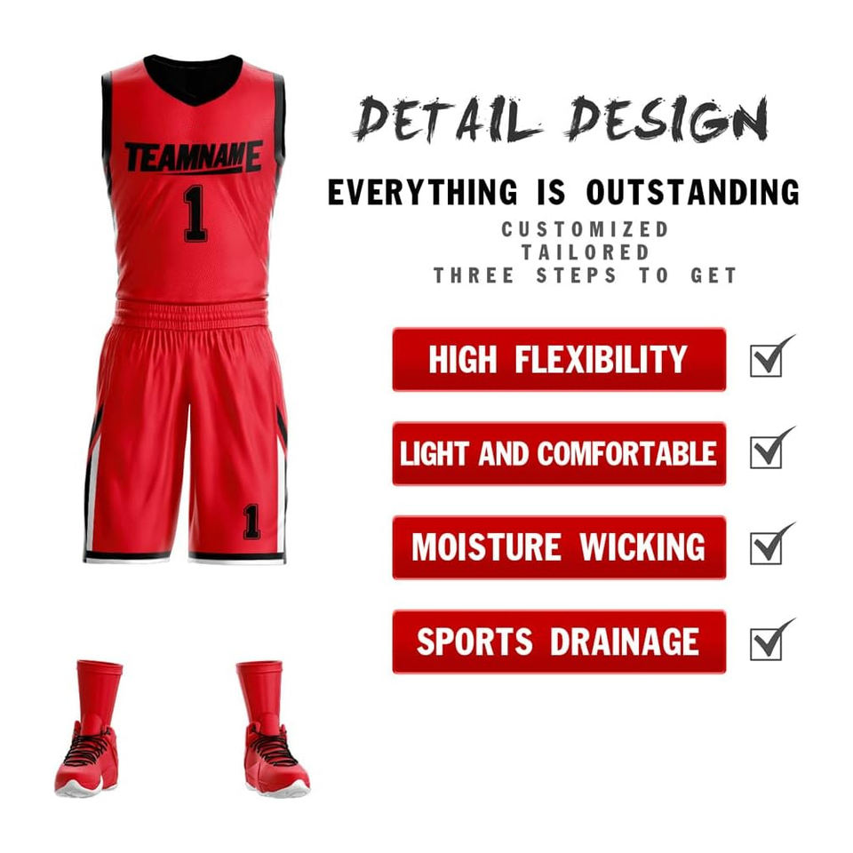Conjunto de uniforme de baloncesto unisex de tendencia superior Mejor material Característica transpirable Servicio OEM Logotipo impreso Venta directa-Venta al por mayor
