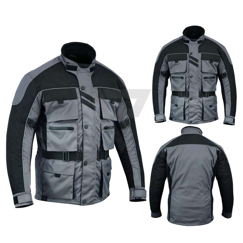 Chaqueta de Motociclismo Deportiva Gris y Negra, de Moda, Transpirable, con Tela Cordura Resistente al Viento, para Carreras de Motos