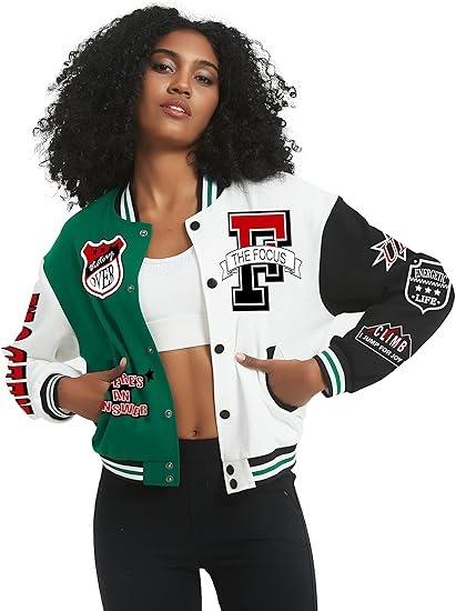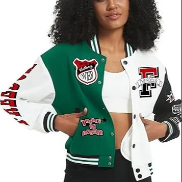 Top Trending Custom Logo 100% Algodón Fleece Cropped Mujeres Varsity Chaquetas 2025 Ladies University Chaquetas