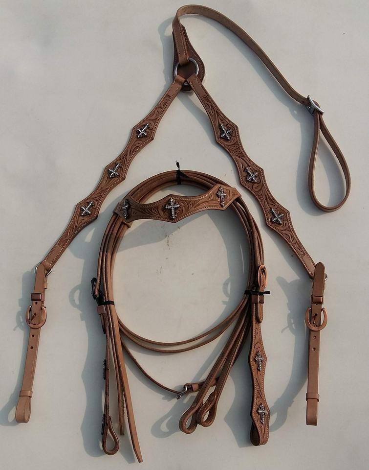 Top Trending Leather headstall Western show leather headstall Horse headstall con martingala de cuero a juego