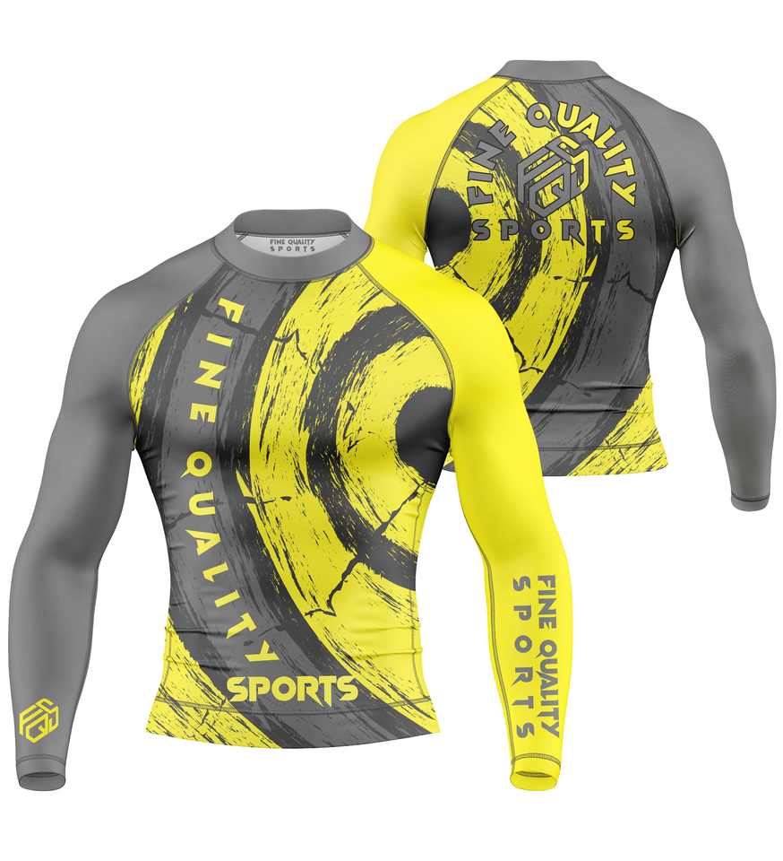 Top Trending Men's Heat-Transfer Impreso UPF50 + Secado rápido Transpirable Poliéster Compresión Rash Guards para MMA BJJ
