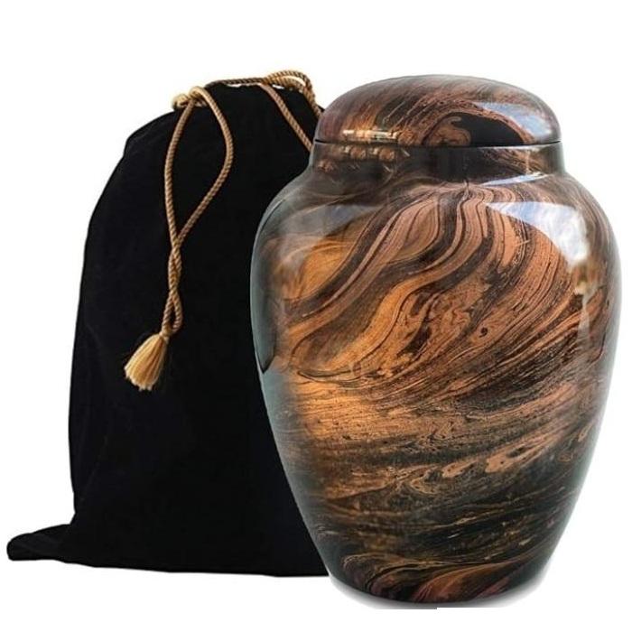 Urna de cremación para adultos con acabado de textura de madera clásica de diseño impresionante de tendencia superior para cenizas funerarias para hombres y mujeres
