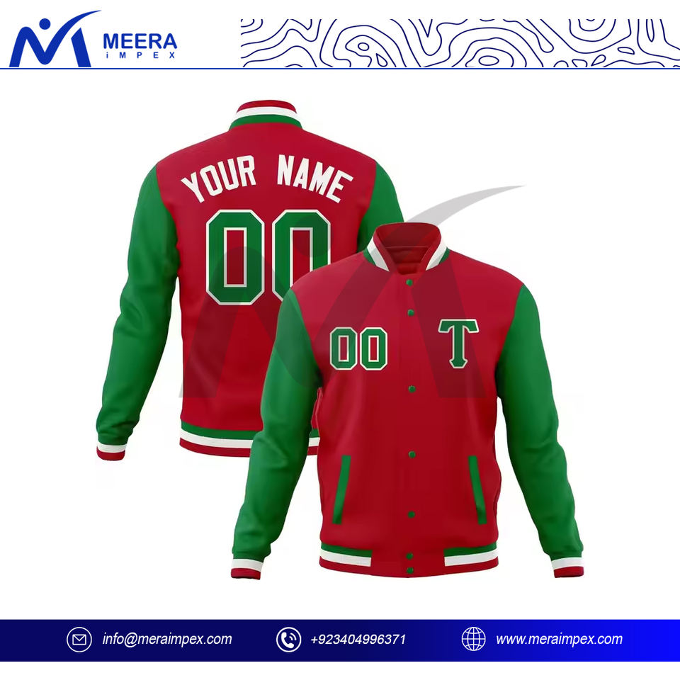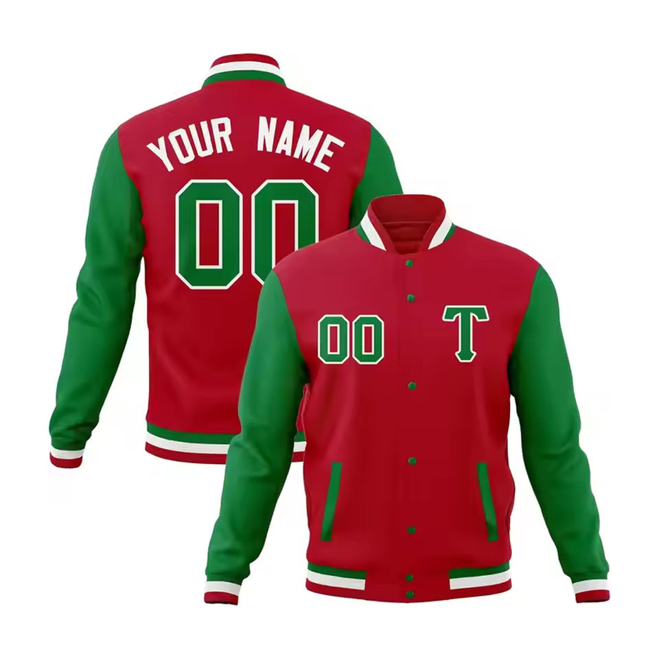 Chaqueta universitaria de manga larga de Color rojo verde sólido de diseño de moda superior, chaqueta de invierno de talla grande de tela transpirable con logotipo personalizado para hombres
