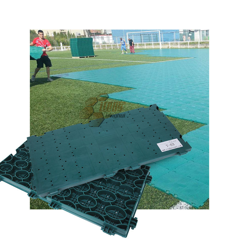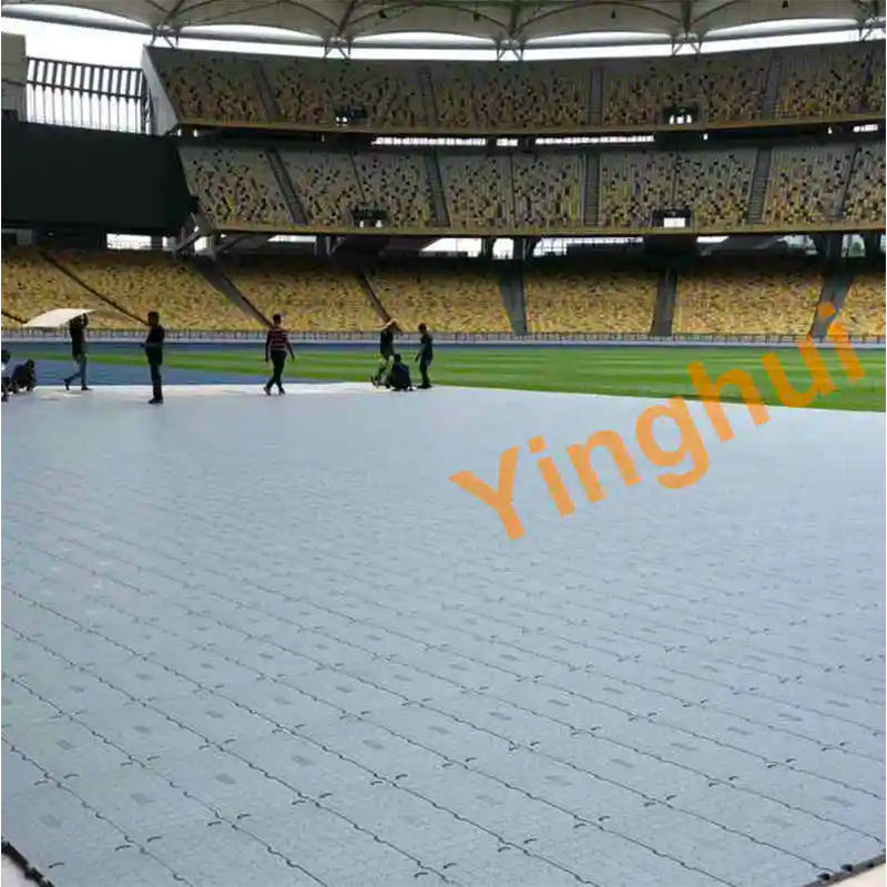 Suelo deportivo de alta calidad, alto deslizamiento, resistencia al fuego, PP, evento, azulejo de protección de césped, plástico Premium para lugares deportivos