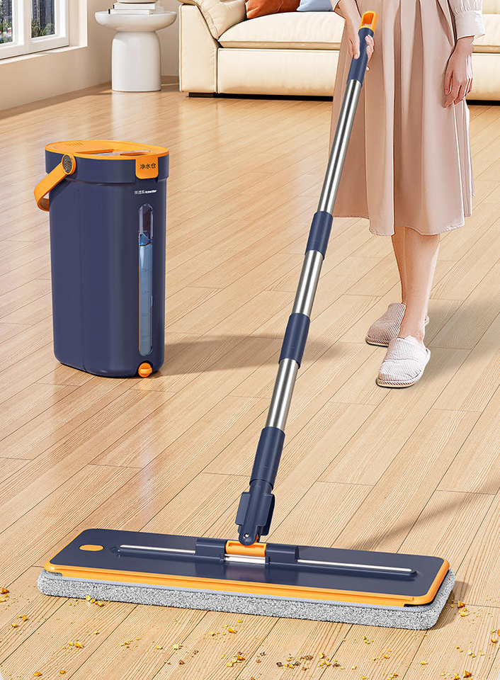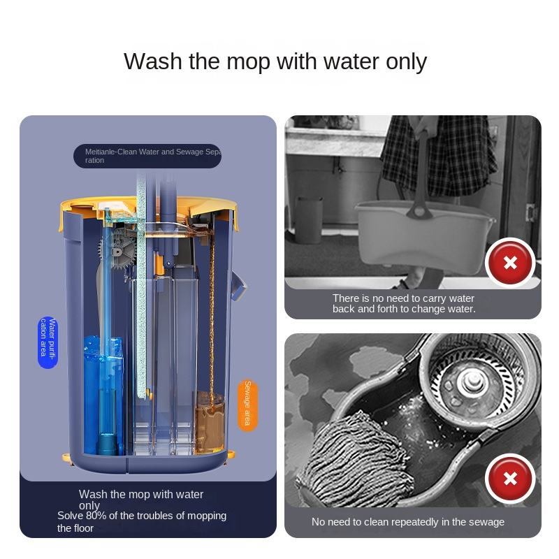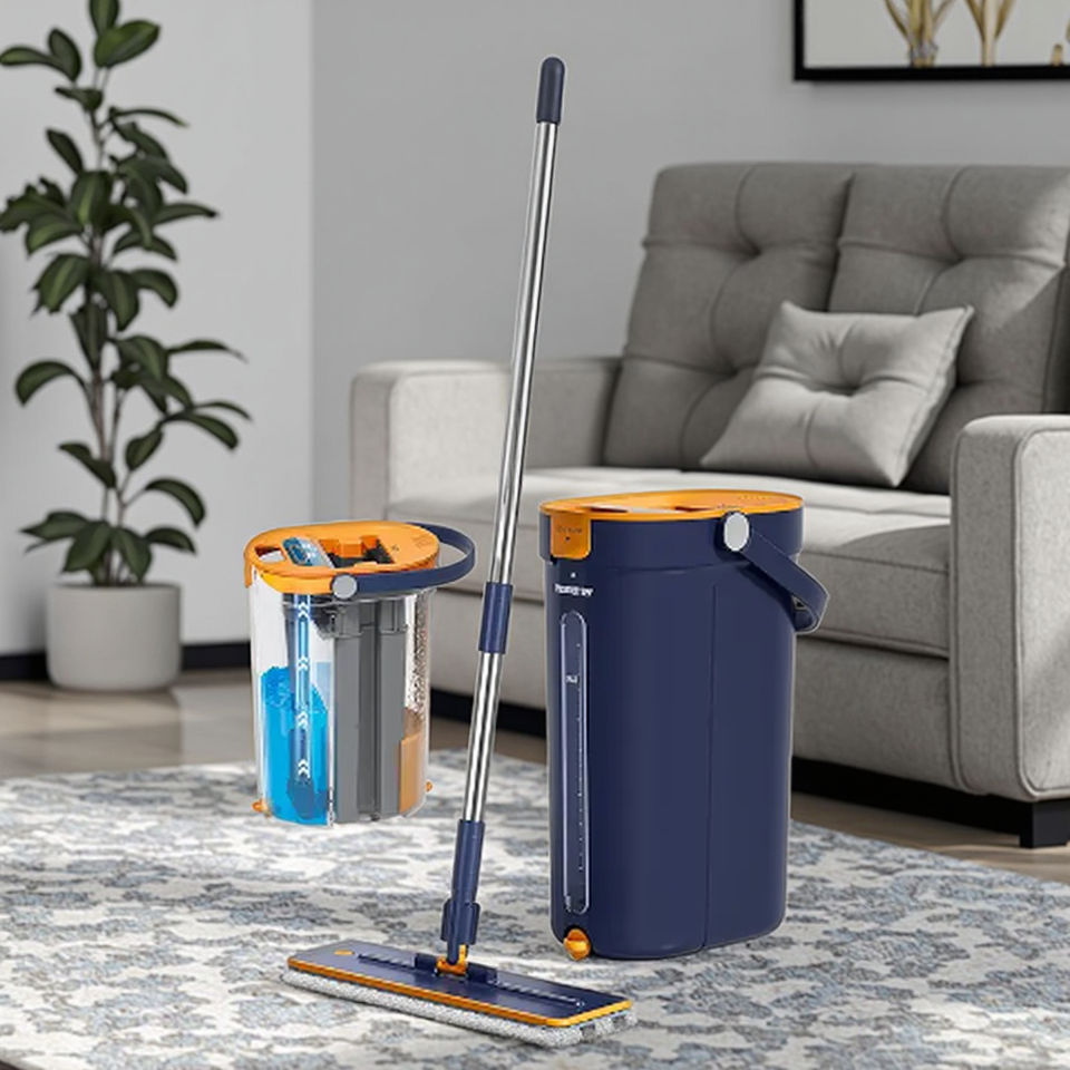 Cubo de Fregona de Microfibra de Calidad Superior con Separación de Aguas Residuales y Lavado Manos Libres con 2 Almohadillas para Limpieza del Hogar