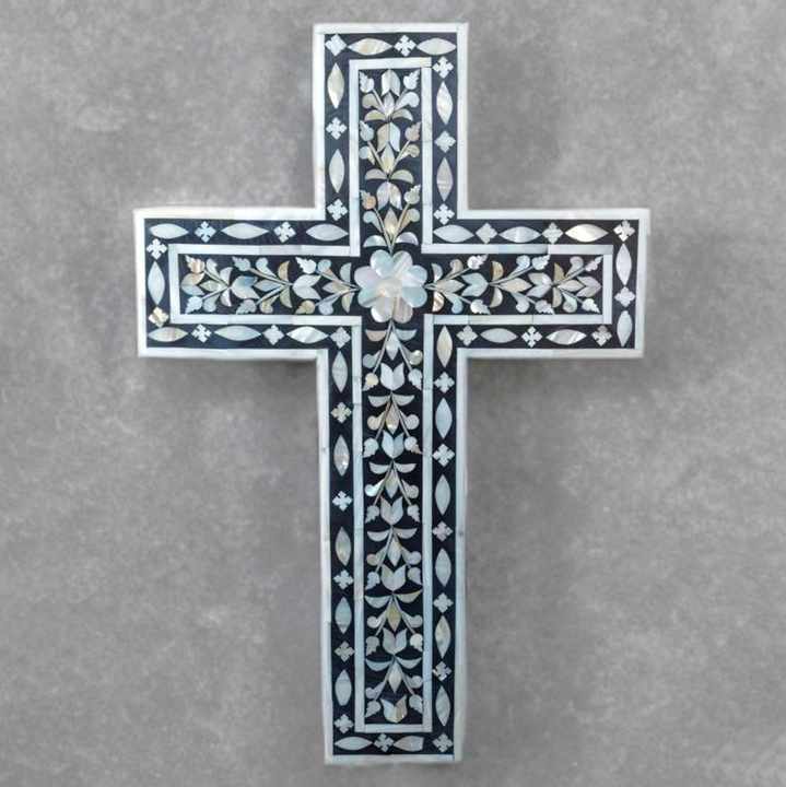 Cruz católica romana de primera selección con incrustaciones de conchas de perlas, cruces sagradas con incrustaciones de fregona natural