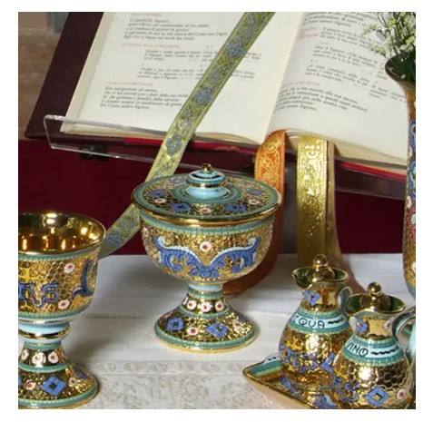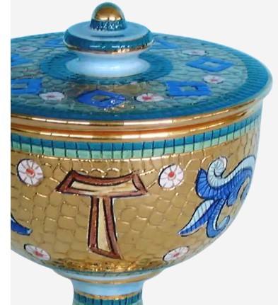 Artículos religiosos de cerámica hechos a mano de alta calidad, ciborium pintado a mano con oro puro y diseño de mosaico