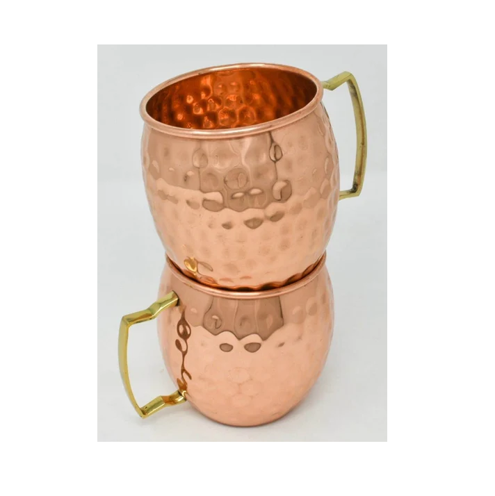 Taza de cobre de mula de Moscú de punto de martillo caliente de alta calidad con mango dorado fabricante de tazas de mula de Moscú de 14oz de India