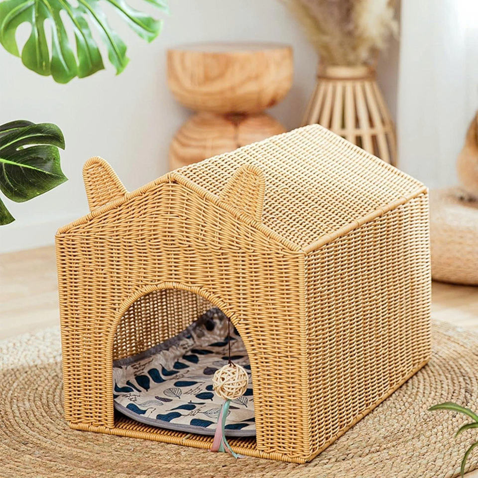 Casa para Perros de Ratán Seleccionada, Caseta para Mascotas Tejida a Mano, Caseta Decorativa de Ratán para Perros y Gatos para Dormir, Venta al por Mayor OEM ODM