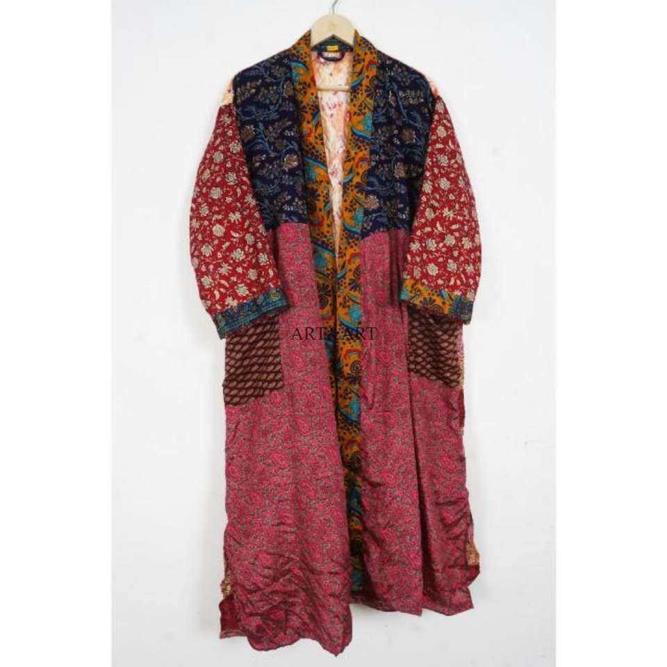 Kimono vintage de satén de seda con patchwork, el más vendido, largo completo, mangas tres cuartos, hecho a mano, ropa de noche india de alta calidad.