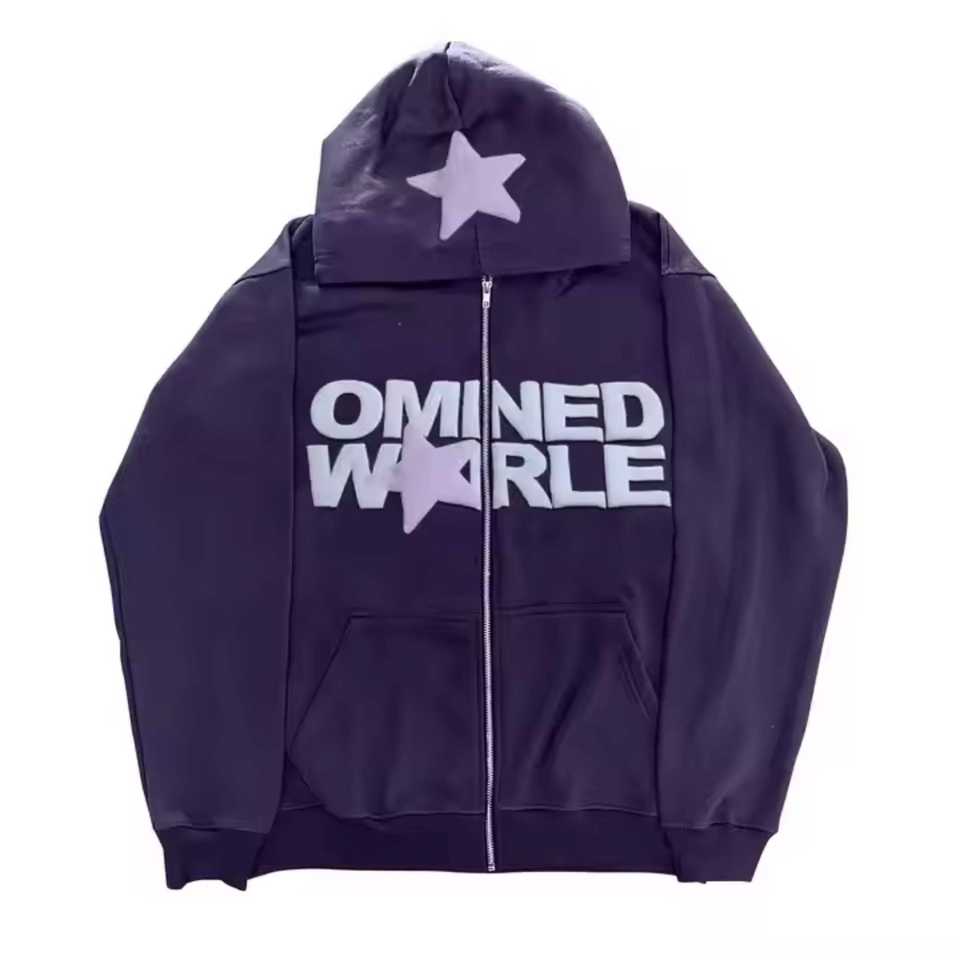 Sudadera con Capucha Personalizada de Moda, Impresión en Pantalla y Puff, Estilo Urbano, Calidad Premium, Cierre de Cremallera, 500GSM, para Hombre