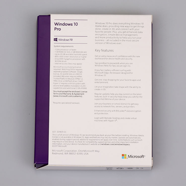 Nombre del producto:Win10 Pro 64bit OEM paquete