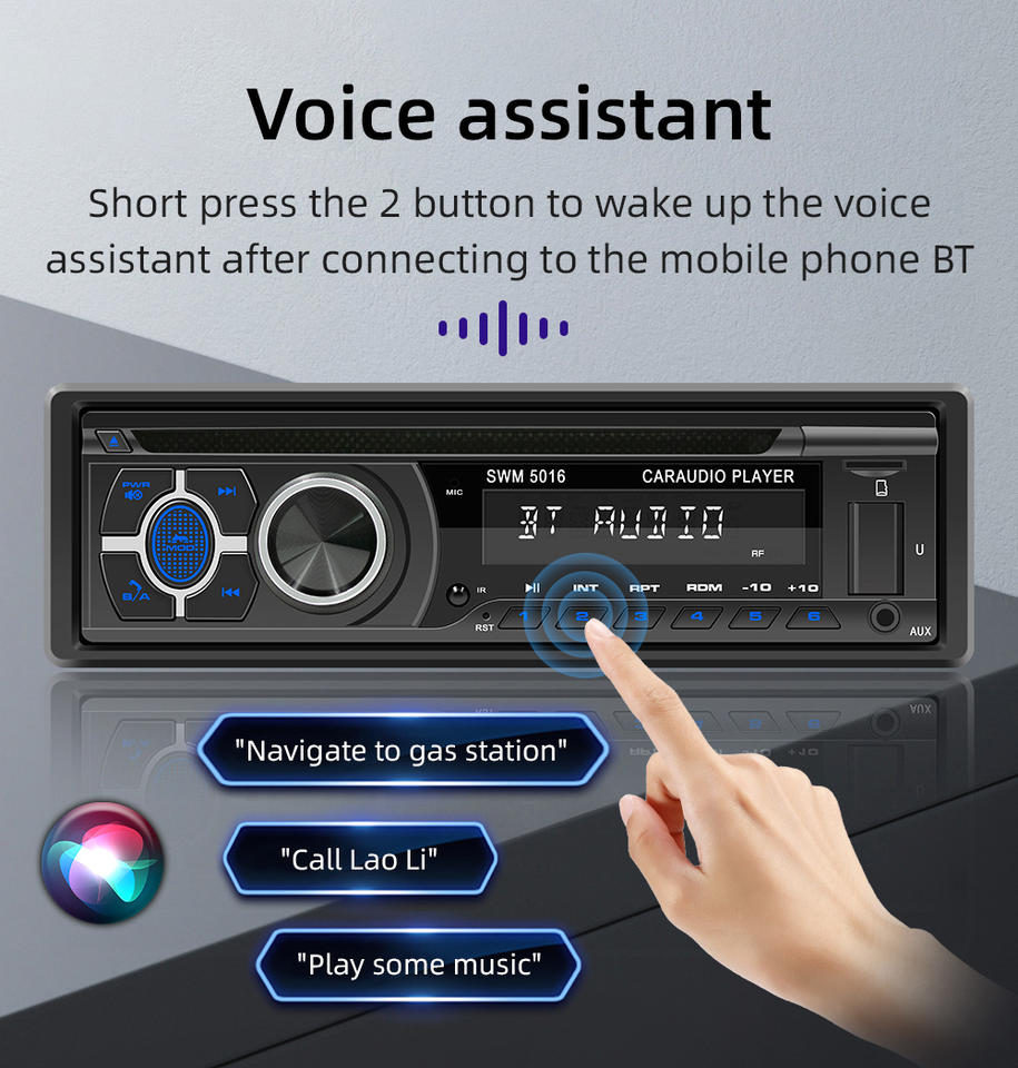 Estéreo, Cargador de coche, Transmisor FM, Control remoto, Manos libres, Amplificador, Control de App, Luces coloridas, Memoria de alimentación