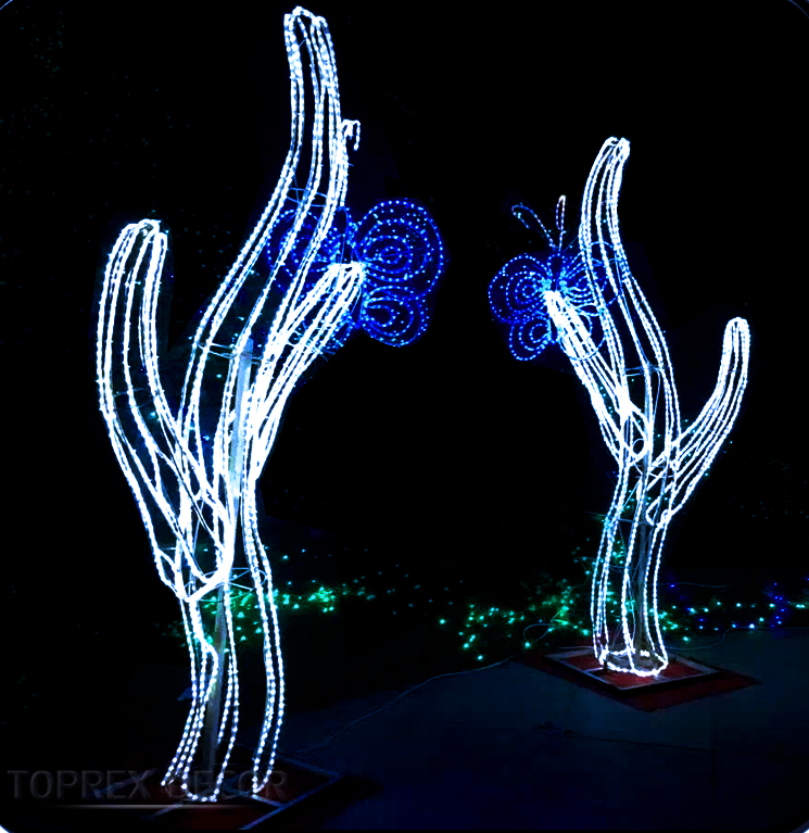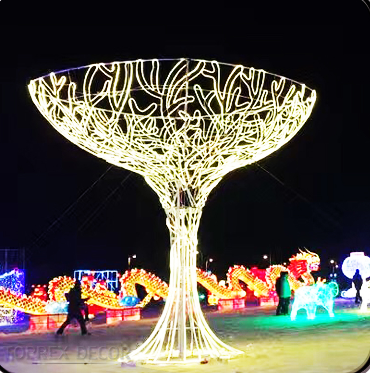 Toprex hecho a medida al aire libre gran iluminación iluminada luces de hadas decorativas de lujo árbol ramita blanca artificial